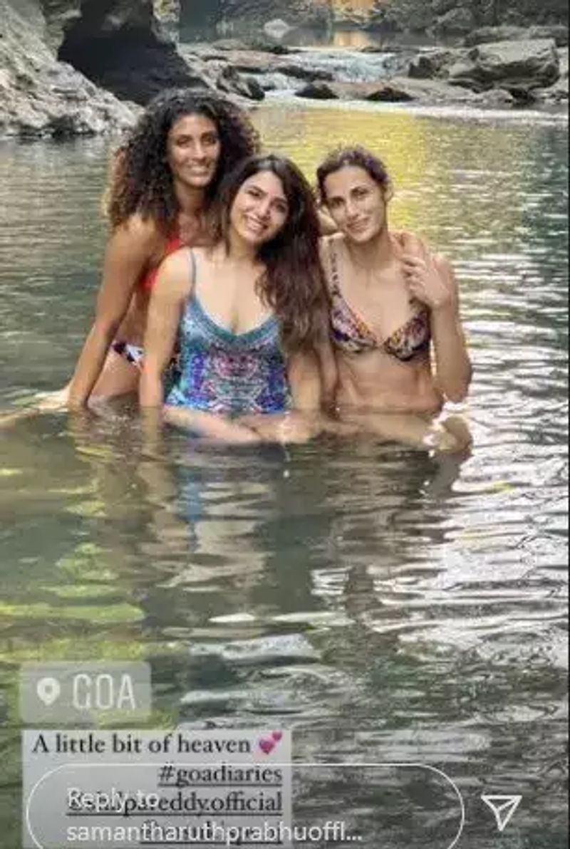 वहीं दूसरी तस्वीर में सामंथा अपने दोस्तों के साथ पानी के बीच काफी सिजलिंग पोज देती नजर आ रही हैं। इस दौरान उनकी स्माइल और उनका बिकनी अवतार फैंस का दिल लूट रहा है। सामंथा की यह दोनों तस्वीरें सोशल मीडिया पर काफी वायरल हो रही हैं।