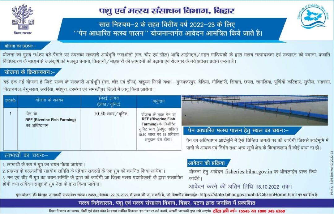 इस योजना के बारे में इससे अधिक जानकारी जानने के लिए आप सरकार की आधिकारिक वेबसाइट http://fisheries.bihar.gov.in पर विजिट कर सकते हैं… या फिर हेल्पलाइन नंबर 15545 या 18003456268 पर कॉल कर अपने सभी सवालों के जवाब जान सकते हैं।