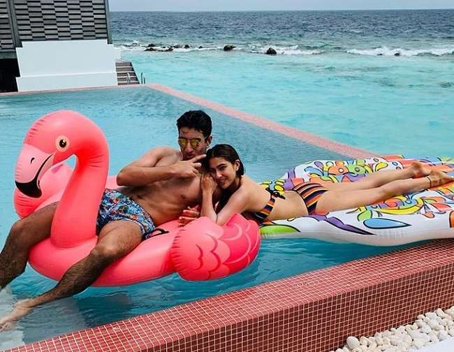 भाई संग बिकनी अवतार में सारा की मस्ती