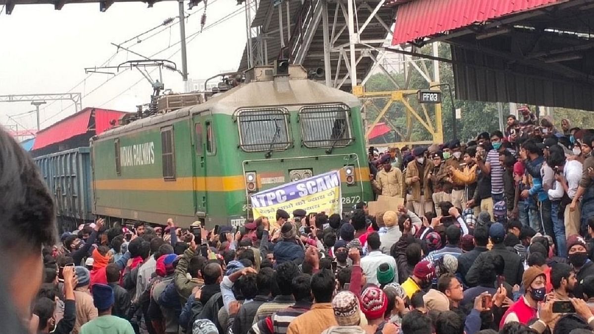 आरआरबी एनटीपीसी का रिजल्ट (RRB NTPC Result) घोषित कर दिया गया है, जिसे लेकर छात्रों में आक्रोश का माहौल है। रिजल्ट (RRB NTPC Result Controversy) को लेकर छात्रों का कहना है कि उसमें धांधली की गई है। नराज अभ्यार्थियों (Candidates Protest At Railway station) ने पटना और आरा के रेलवे ट्रैक पर जाम लगा दिया है, जिससे न सिर्फ रेल के पहिए थम गए हैं बल्कि साथ ही पुलिस प्रशासन भी मुश्किलों में है। नाराज अभ्यार्थियों को रेलवे (Patna Railways) और पुलिस प्रशासन (Patna Police) के आला अधिकारी समझा-बुझाकर हटाने में लगे हुए हैं, लेकिन अभ्यार्थी अपनी मांग पर अड़े हुए हैं।